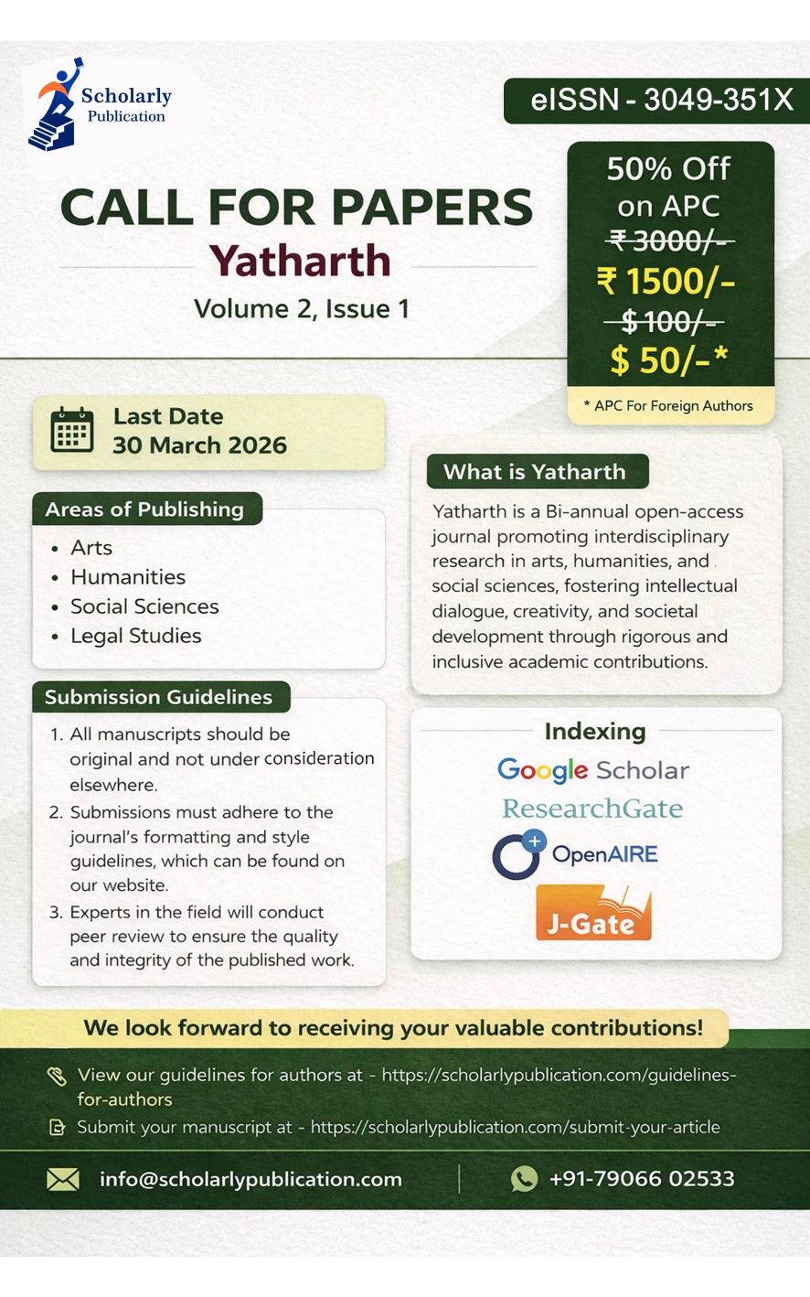 Publishing cutting-edge research across Natural and Allied Sciences, Engineering & Technology, Commerce, Management, Arts, Humanities, Social Sciences, and more.